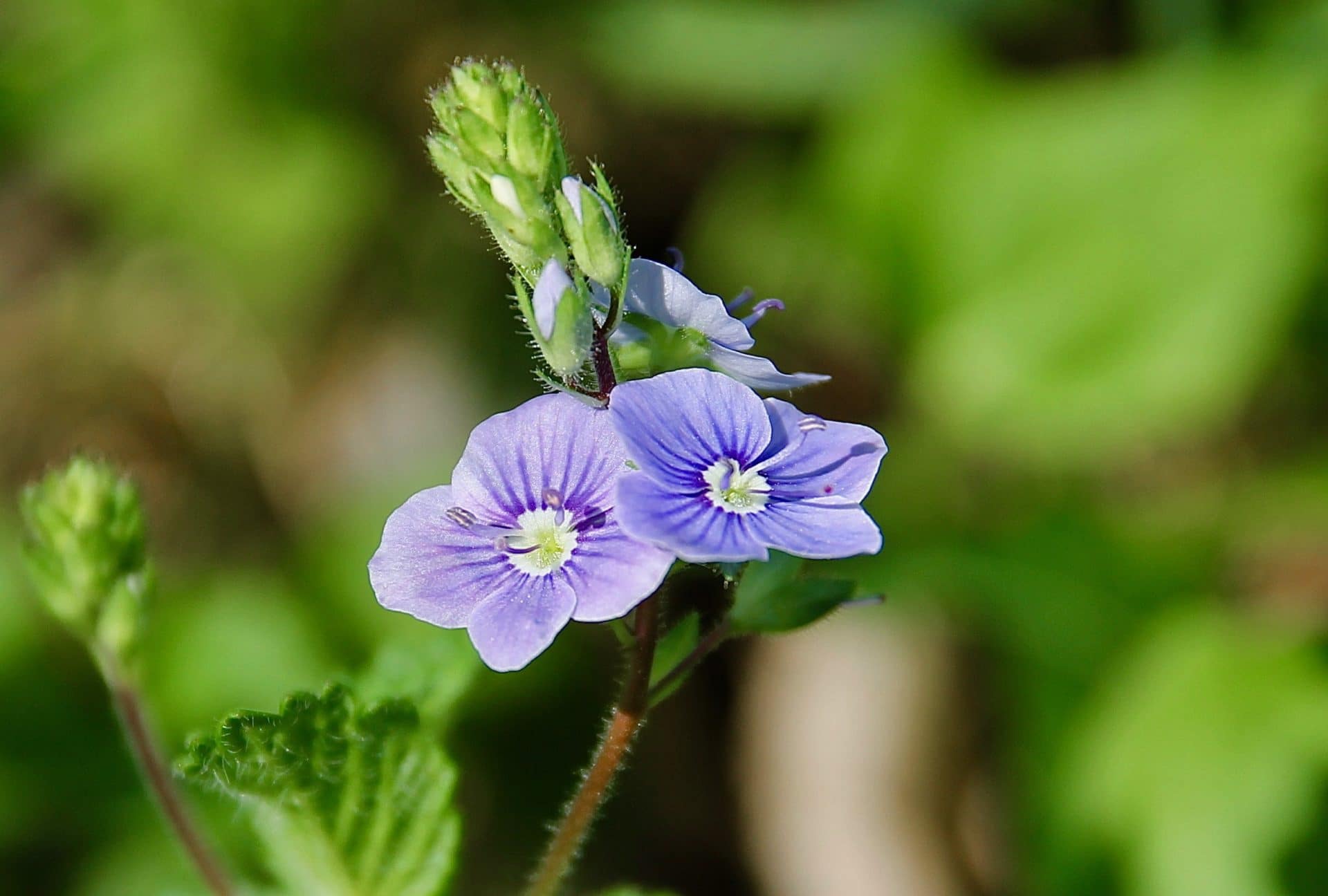 La Véronique petit-chêne : une rigoureuse symétrie dans la composition de ses fleurs délicates comme dans la … pilosité de sa tige !