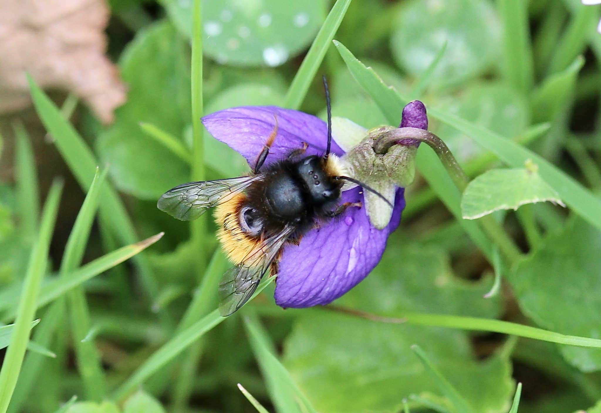La Violette odorante s’est ensauvagée au jardin où Monsieur Osmie cornue la visite régulièrement au fil de ses allées et venues..