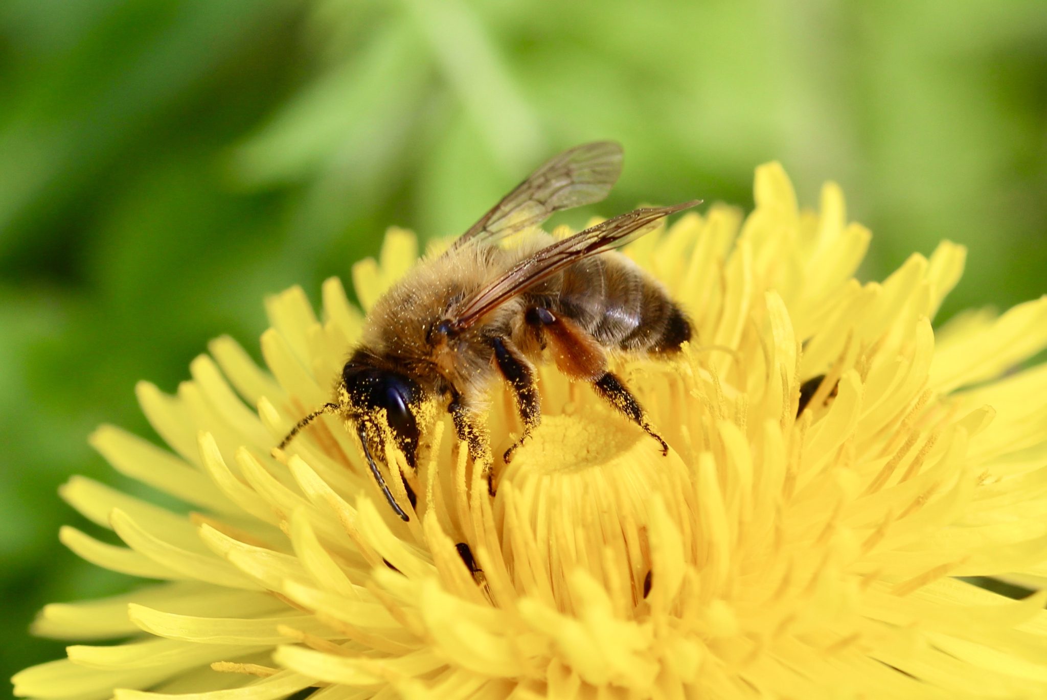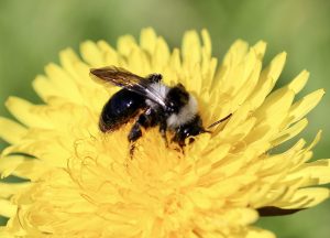 S’il ne fallait qu’une fleur sauvage, ce serait le Pissenlit dès les premiers beaux jours ! Ici avec l’Andrène noir bronze.