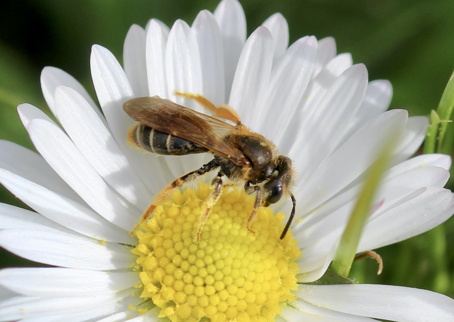Fidèle parmi les fidèles : la Pâquerette reprend vigueur oà l’approche du printemps/ Ici avec l’Andrène pattes-d’or.