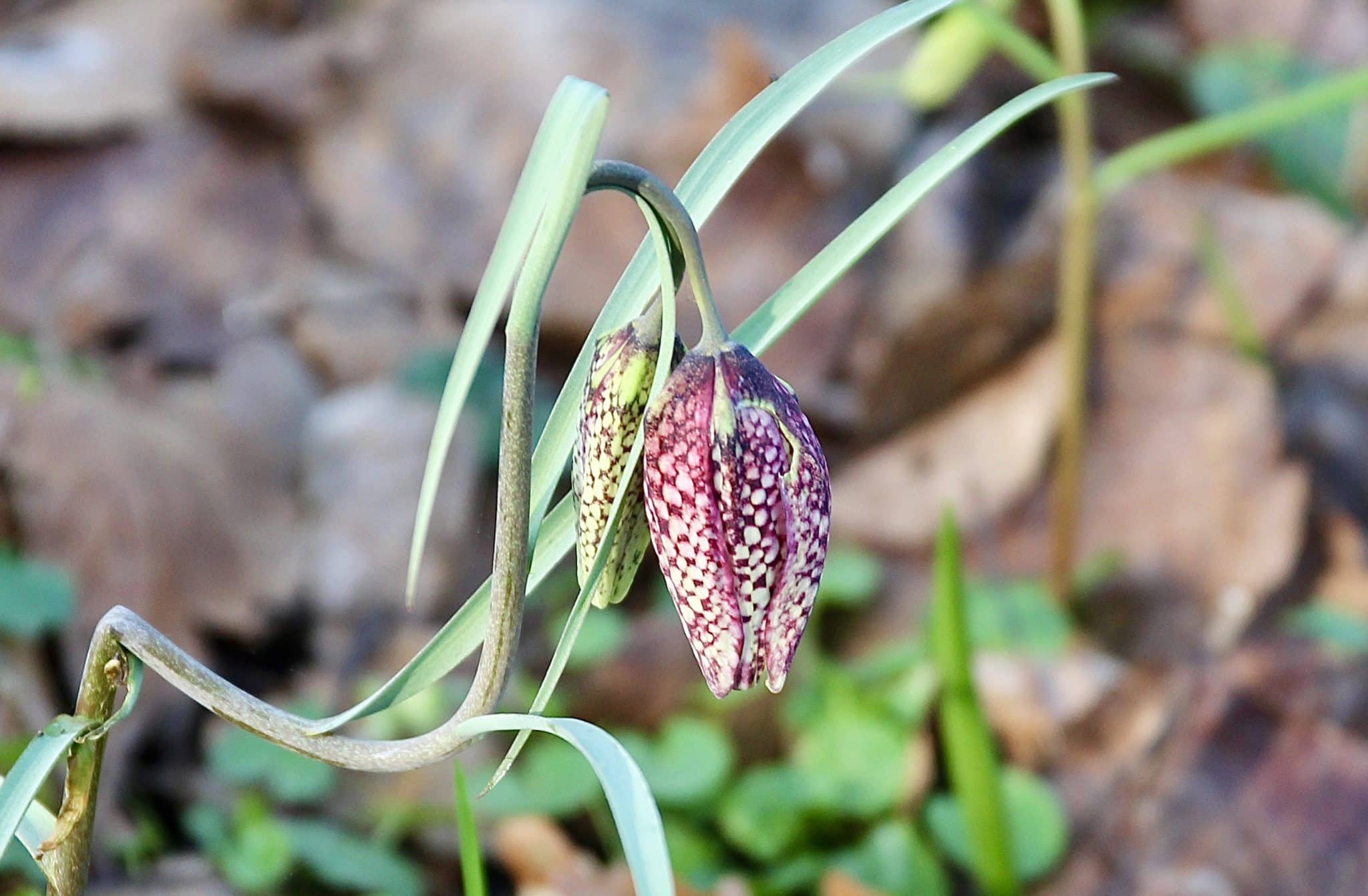 Emblématique des prairies humides, la gracile Fritillaire pintade annonce timidement le printemps dès février-mars.