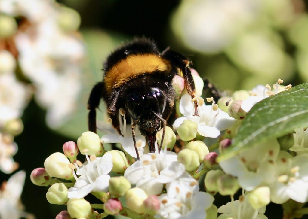 Bourdon terrestre, reine sur pommier en fleurs.