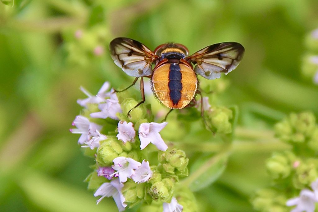Aussi trapue que tranquille butineuse. La Tachinaire corpulente, assurément la mouche la plus impressionnante du jardin !